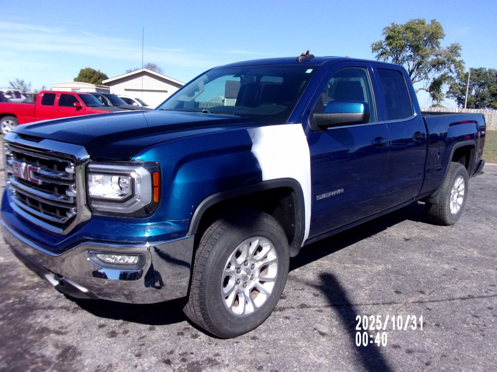 Super Low Mileage and very light damaged!!! 2017 GMC GMC Sierra Double Cab 4x4 SLE 2017 GMC Sierra SLE X Cab 4x4 OCEAN BLUE 2017 GMC Sierra SLE 4x4 Double Cab. 5.3 Auto. Loaded with Black Cloth interior. Heated Front seats, Power Drivers Seat, Tilt, Cruise, Power Windows and Locks, Auto Start, Back Up Camera, , Nice wheels and tires,, and more .Starts and Lot drives fine. Needs minor paint work